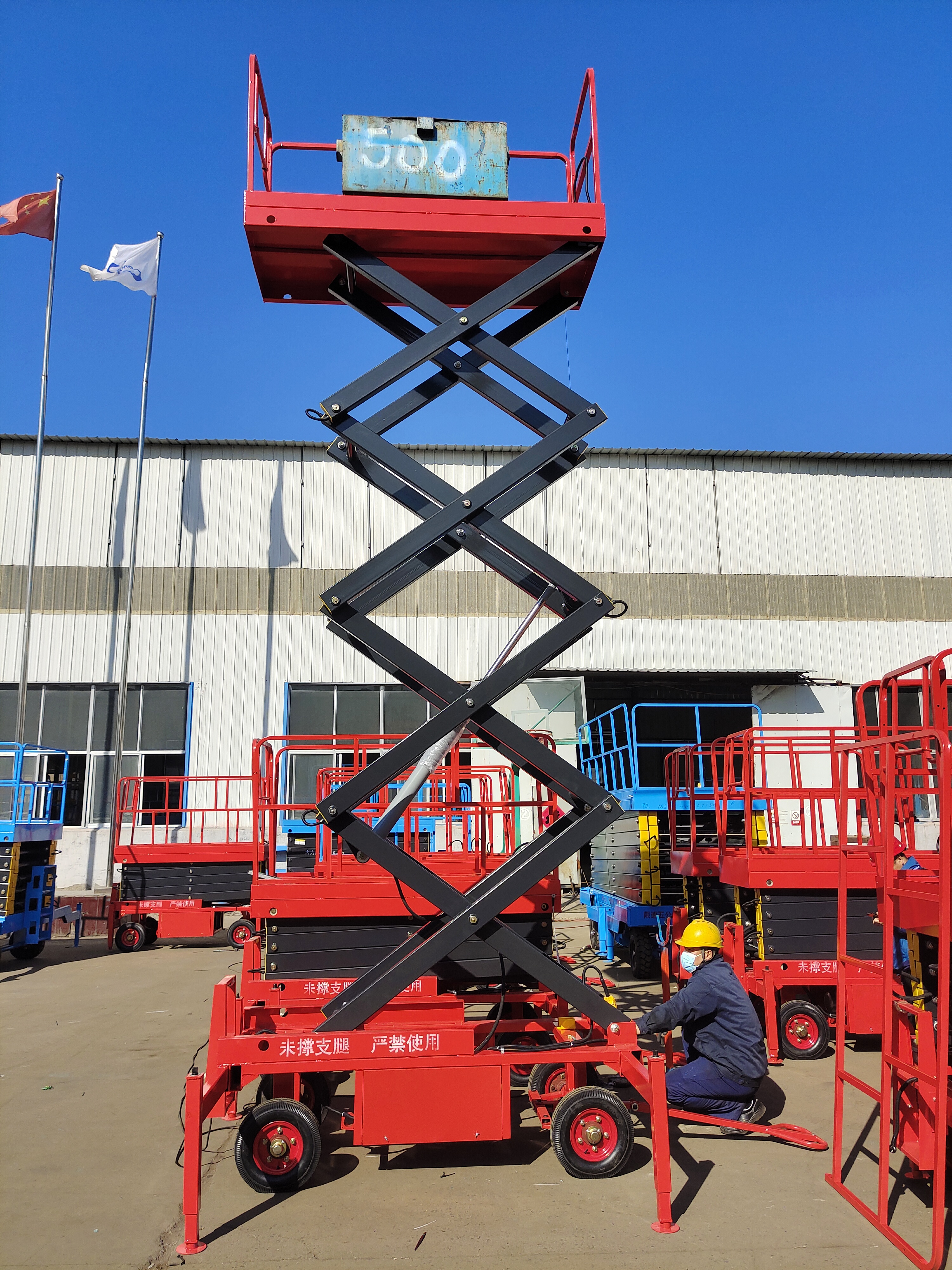產品簡介:該移動升降平臺是剪叉式升降機的普通版,產品的升降高度從4-18米,載重能力僅提供300Kg,且機身顏色為藍色。適合對升降平臺載重和安全性要求不高的高空作業。該升降平臺同樣采用